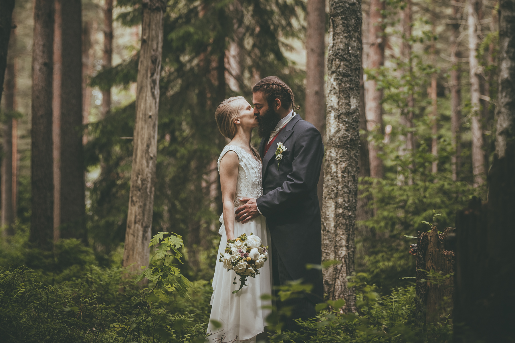 Otimme Lauran ja Jussin hääportretit juhlapaikan pihalla, jonka jälkeen suuntasimme takaisin metsään. Hääparin lisäksi yritin ikuistaa metsän hengen, harmonian ja intiimin tunnelman. Alla näette minun suosikkikuvia.