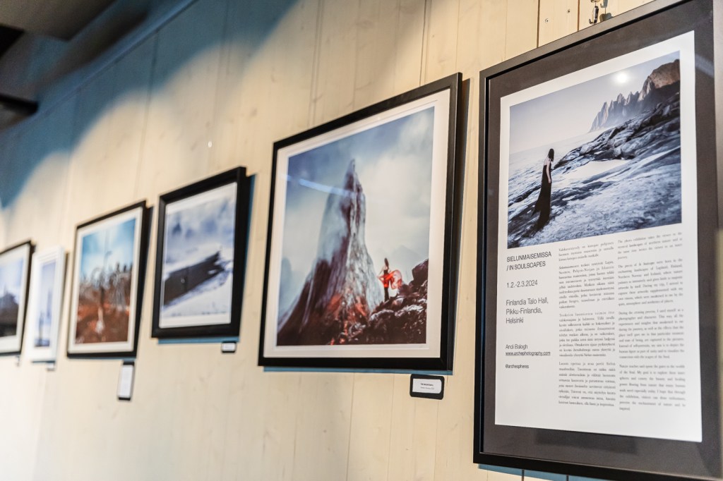 Sielunmaisemissa:n teokset syntyivät Lapin, Suomen, Pohjois-Norjan ja Islannin lumoavissa maisemissa, joissa luonto sykkii niin intensiivisesti ja synnyttää itsestään jylhiä taideteoksia. Matkani aikana näitä taideteoksia pyrin ikuistamaan täydennettynä omilla visioilla, jotka heräsivät minussa paikan hengen, tunnelman ja estetiikan vaikutuksesta. Pyrkimykseni oli kuvata ihmishahmoja osana ykseyttä ja visualisoida yhteyttä Sielun maisemiin.